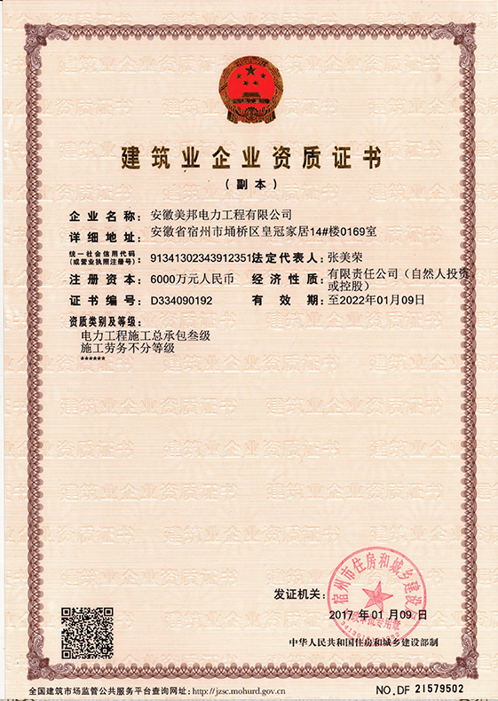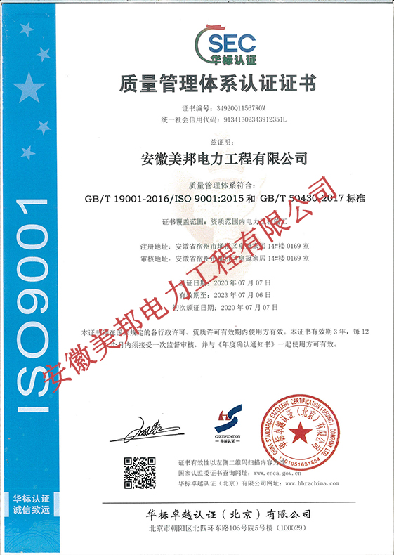 安徽美邦電力工程有限公司成立于2015年6月,坐落于宿州高新區。是一家從事電力工程設計、電力設備生產、電力工程施工、電力托管服務、電力工程搶險為一體的一站式綜合性公司。公司現有各類專業技術職稱的管理人員及大批從事電力工程專業施…